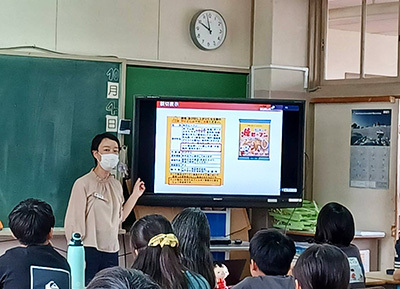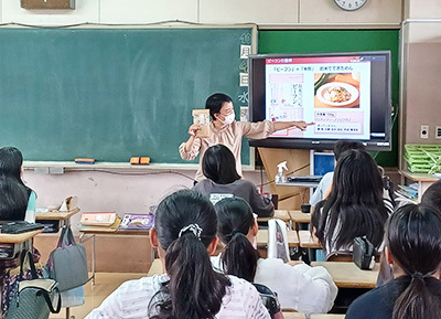 今回の授業は「ケンミン食品」が講師を担当し、小学5年生79名、小学6年生66名を対象に授業を実施しました。また、対面授業当日はオープンスクールであったことから、保護者も参加されました。