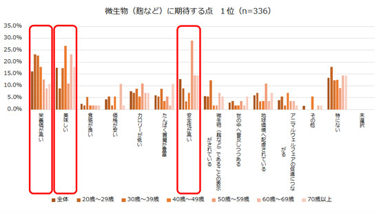 ※微生物(麹など)に期待する点の1位は、「美味しい」「栄養価が高い」「安全性が高い」の回答割合が高い。