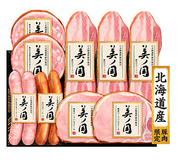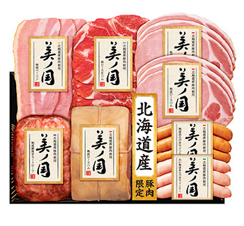 | 内容量 | 熟成ロースハム(390g) 熟成網焼きミートローフ(164g) 熟成ロースハム(45g×2) 熟成ベーコン(48g) 肩ロース生ハム(30g) 熟成あらびきウインナー(60g) 白い熟成あらびきウインナー(60g) |