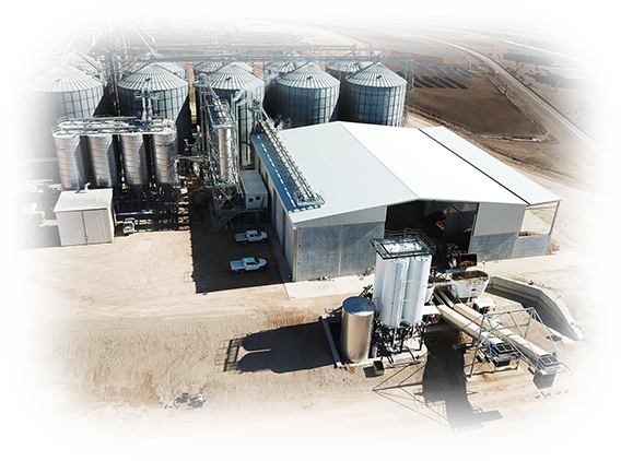 自社の飼料工場でスチームした、消化にやさしい穀物飼料を給餌