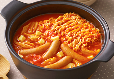 煮立ったらアクを除き、白菜を加えて1分煮る。シャウエッセンとインスタントラーメンを加え、さらに3分煮る。