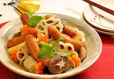 スパゲッティを表示通りに茹で、茹で上がる3分前にシャウエッセンを加える。