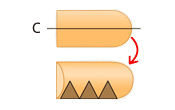 C(羽)を半分に切り、両側とも左右対象に山切りにする。