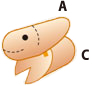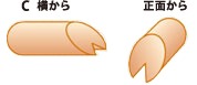 胴体部分(C)の切り落した部分にVの字を入れ足部分を作ります