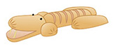 D(胴体)を切り口を上にして図のように3等分し、E(うしろ脚)、F(しっぽ)に切り分けます。