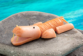 1本目のウインナーを、A(かお)、B(まえ脚)に切り分けます。