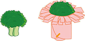 ゆでたブロッコリーを中心に、2のハムを巻き、下の部分をパスタでとめます。
