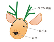 A(あたま)の頭頂部に切り込みを入れ、B(みみ)とパセリの角を差し込みます。