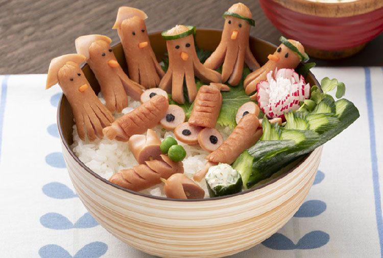 盛り付ける飾り切りの動物たちは海や川の動物を選ぶと、より涼しげに見えます。