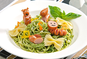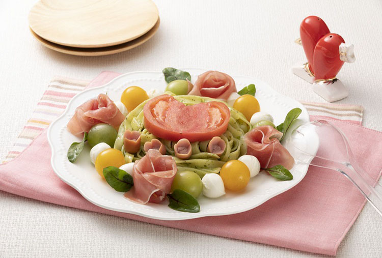 いつものパスタに飾り切りをのせてボリュームアップ。