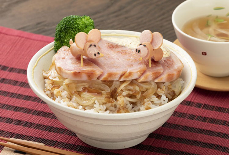 飾り切りブタさんの鼻はスライスチーズを丸く切りゴマをつけると愛らしいよ。