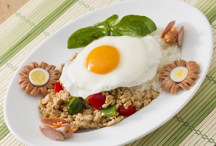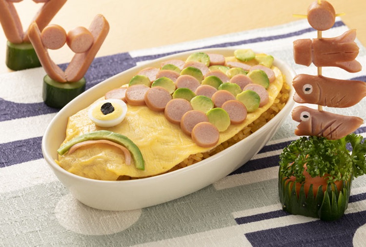 ピラフの上に飾り切りを乗せるだけで楽しさ倍増です。