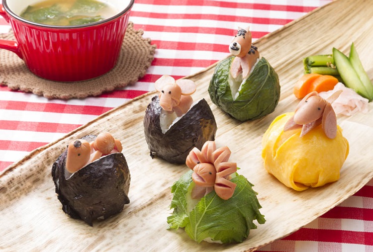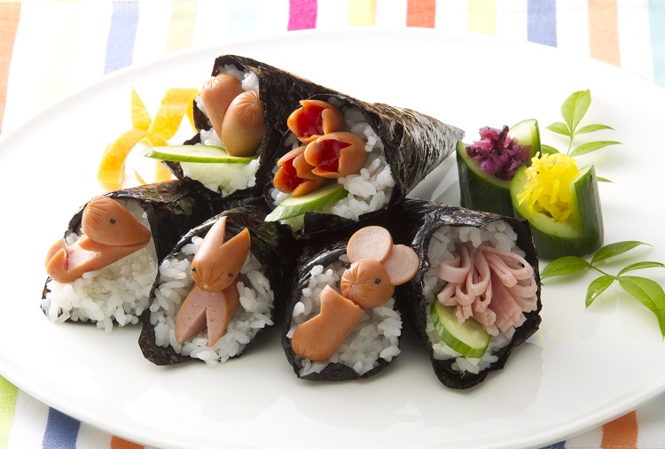 かわいい動物たちが手巻き寿司の中からのぞいてる。