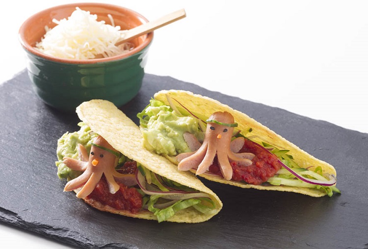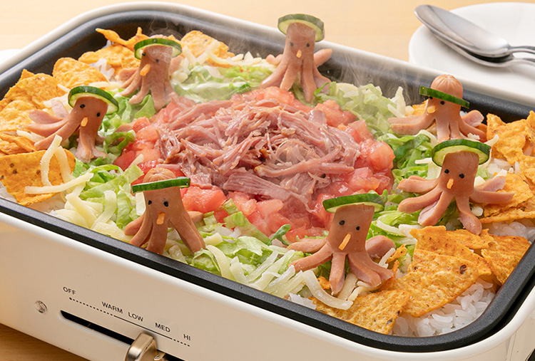 ホットプレートで簡単に作れるタコライスのトッピングには、ウインナーのタコがのってます。