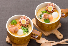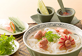 フォーのトッピングに飾り切りをのせ食欲増進!