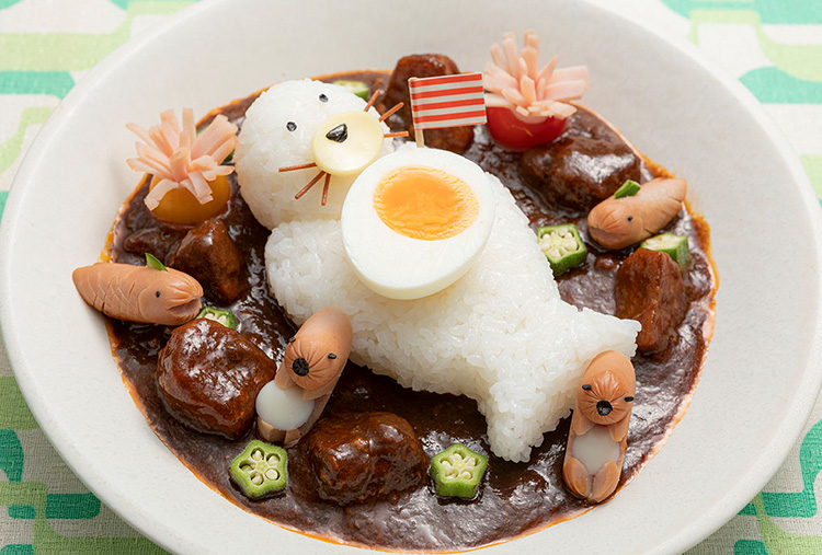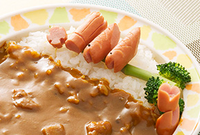 カレーから顔をのぞかせるカバは大きめのウインナーでつくると迫力満点!