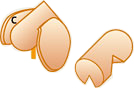 Bをタテ、ヨコにV字の溝を入れると前足、後ろ足ができます。