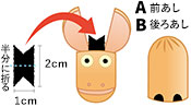A(まえ脚)とB(うしろ脚)に半円に切った海苔でヒヅメをつけます。
