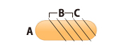 ウインナーを横におき、右図B(胴体)のように2mm幅で、斜め3等分に切り右端C(尾)部分を斜めに切る。