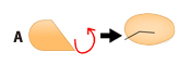 A(頭)を180°回転させ先端に、への字に切り込みを入れる。