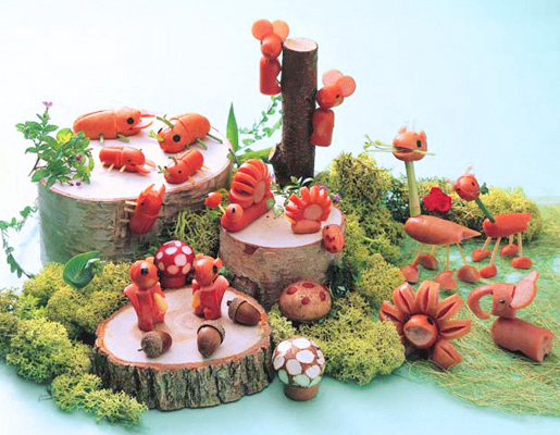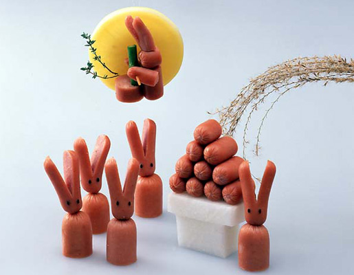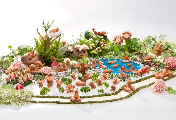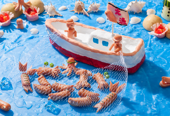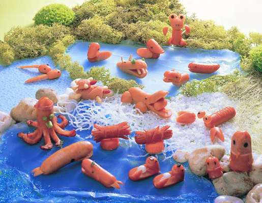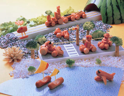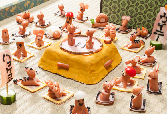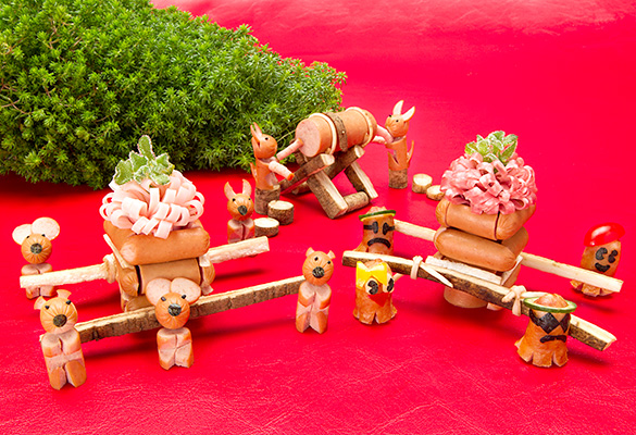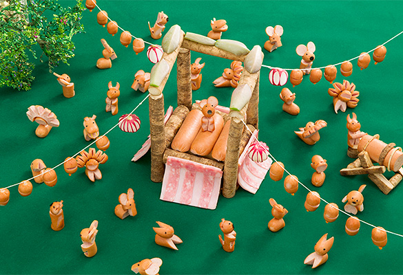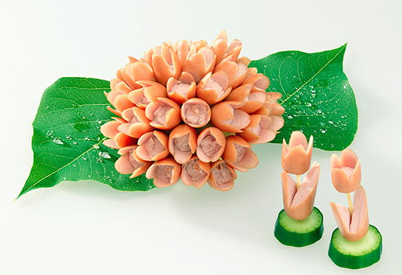 飾り切り王国へようこそ。ウィンナーやハムで作った飾り切りの仲間が大集合!