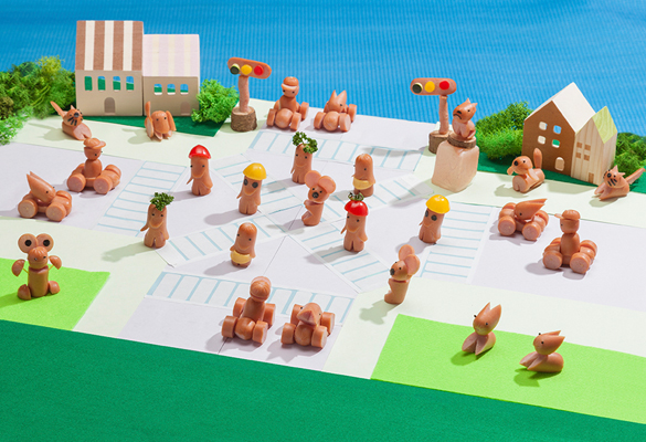 野菜の上に動物を乗せるとジャングルに変身!