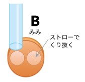 Bからストローで2個くり抜き、耳を作ります。