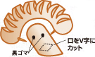 頭にたてがみを差し、黒ごまで目をつけ、口部分をV字にカットして作ります。