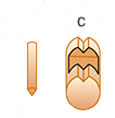 C(体)をタテ・ヨコにV字の溝を切って作る縦に切ったパーツはシッポになります