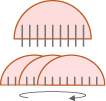 ハムを半分に折り図のように切れ目を入れます。切ったハム3枚をずらしてかさねます。