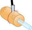 ウインナーの切った面からストローでを突き出ないところまで差し込みます。