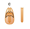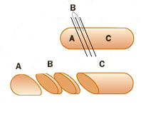 斜めに切る(Aー顔、Bー耳、C-体)
