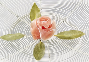 ずらして重ねた生ハムの下から1/3を上方向に折り上げます。