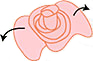 外側からやさしくめくっていくときれいなバラに仕上がります。