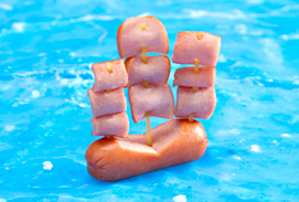 Aウインナーに均等にB、C、Dを、やや斜めに差し込み出来上がり。