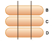 切り分けたB、C、Dを半円の状態にし、3枚をパスタで、それぞれさしていく。