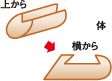 体をたてにV字に切り、さらにハの字に切り落とします。