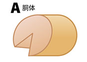 B(あと脚)を斜め半分に切り、A(胴体)の両端にパスタでとめます。