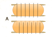 ウインナーを2本ご用意下さい。Aウインナーの両側に竹串を置き5mm幅に切れ目を入れ45度ウインナーを回し、先ほどの切れ目の間にさらに切れ目を入れる。(ジャバラ切り)