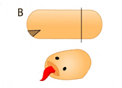 Aウインナーの中心部にBウインナーを入れ、ヘビの出来上がり。