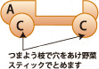AのボディーにCのタイヤを野菜スティックでとめます。
