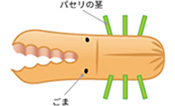 黒ごまで目をつけ、パセリの茎で脚を6本つければ出来上がり。