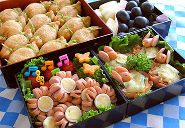 1を半分に切り、好みのおかずと共に弁当箱に詰める。