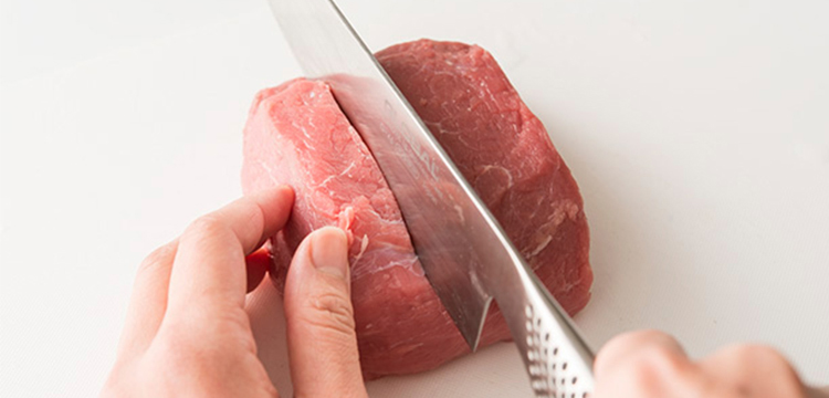 食べやすさを考慮してお肉をカットするには、繊維の方向を見極めることが重要です。