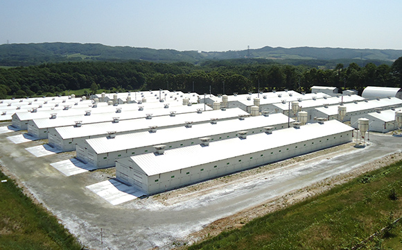 私たちは品質のよい鶏肉をお客様にお届けするため、自分たちの手で鶏の卵をかえすことから始めています。いつでもおいしく、安心して食べて頂くために、生産から処理、加工まで一貫して管理することを40年以上前から続けてきました。私たちの使命は大切ないのちを無駄にすることなく、安心して食べて頂ける鶏肉をできる限り多く食卓までお届けすることです。強い決意で、従業員一人ひとりが今日も鶏たちを真摯に見守っています。