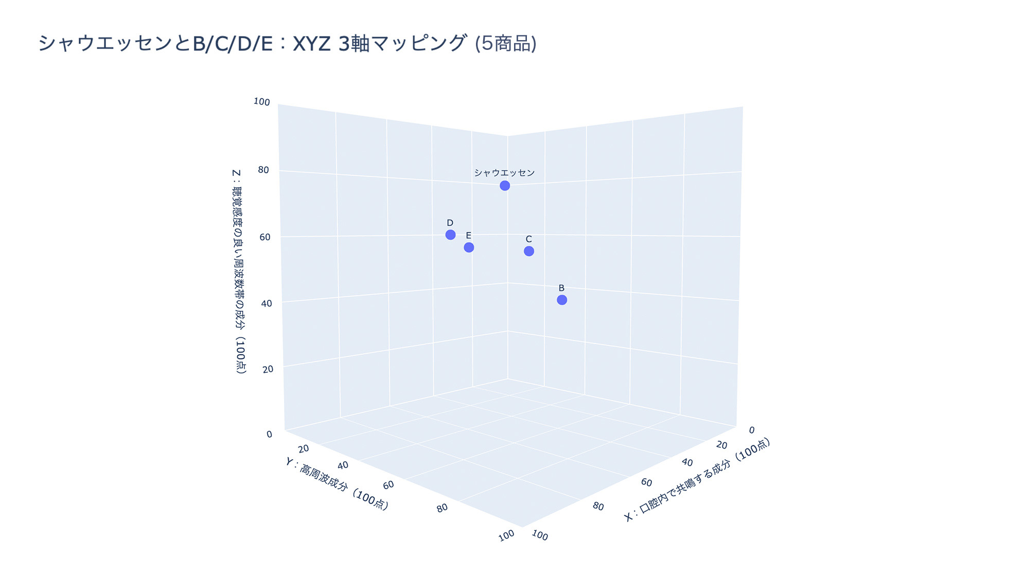 | D:他社製品 | 〇 | 〇 | 〇 | 厚みのある音 |