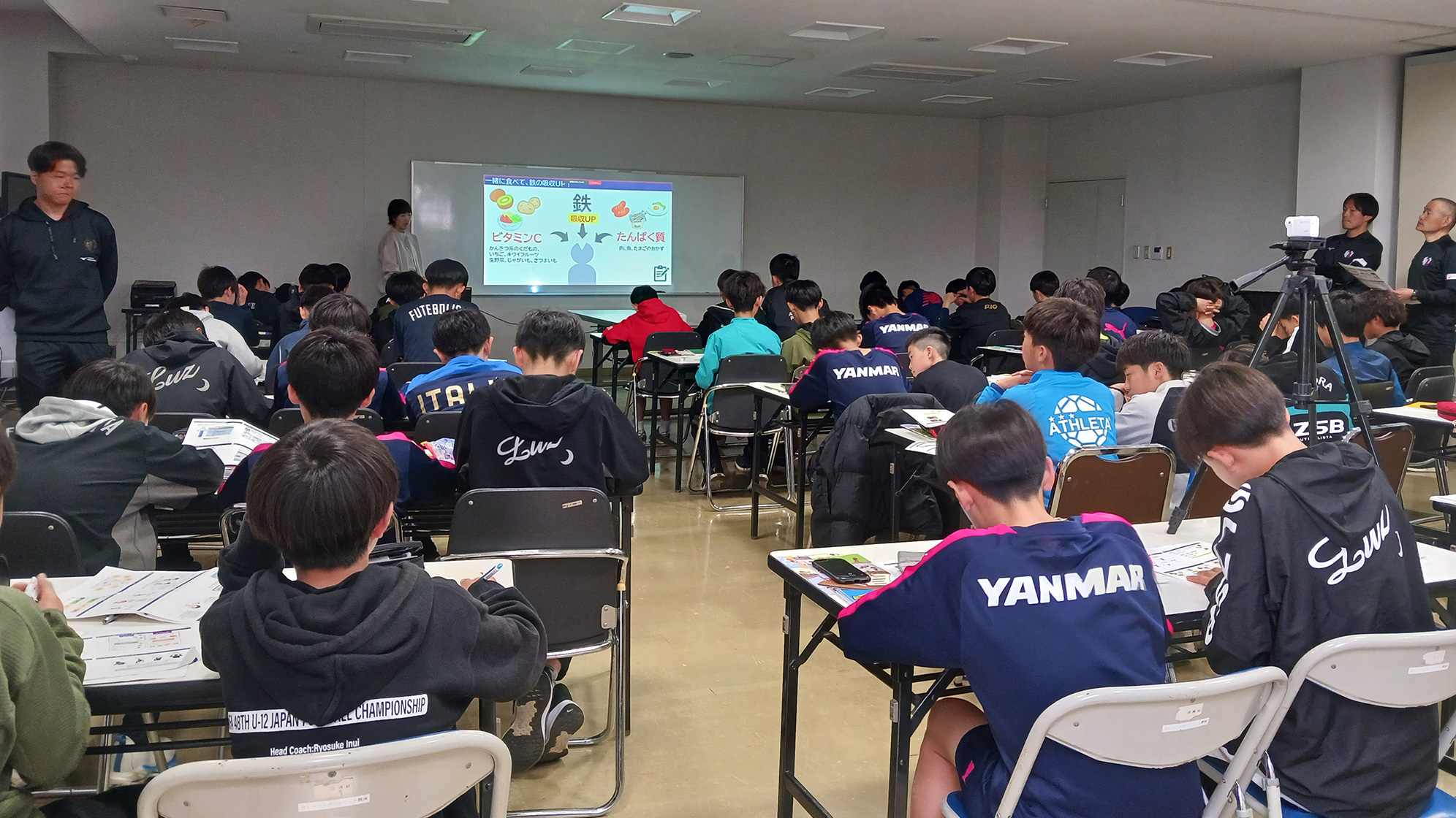 八巻:北海道日本ハムファイターズで栄養指導を行う選手は若くても高校卒業以上の大人ですが、セレッソ大阪アカデミーは成長期の子どもたちです。ですから、選手だけでなく保護者や指導者にも講習会を行い、食事に関する情報を提供しています。