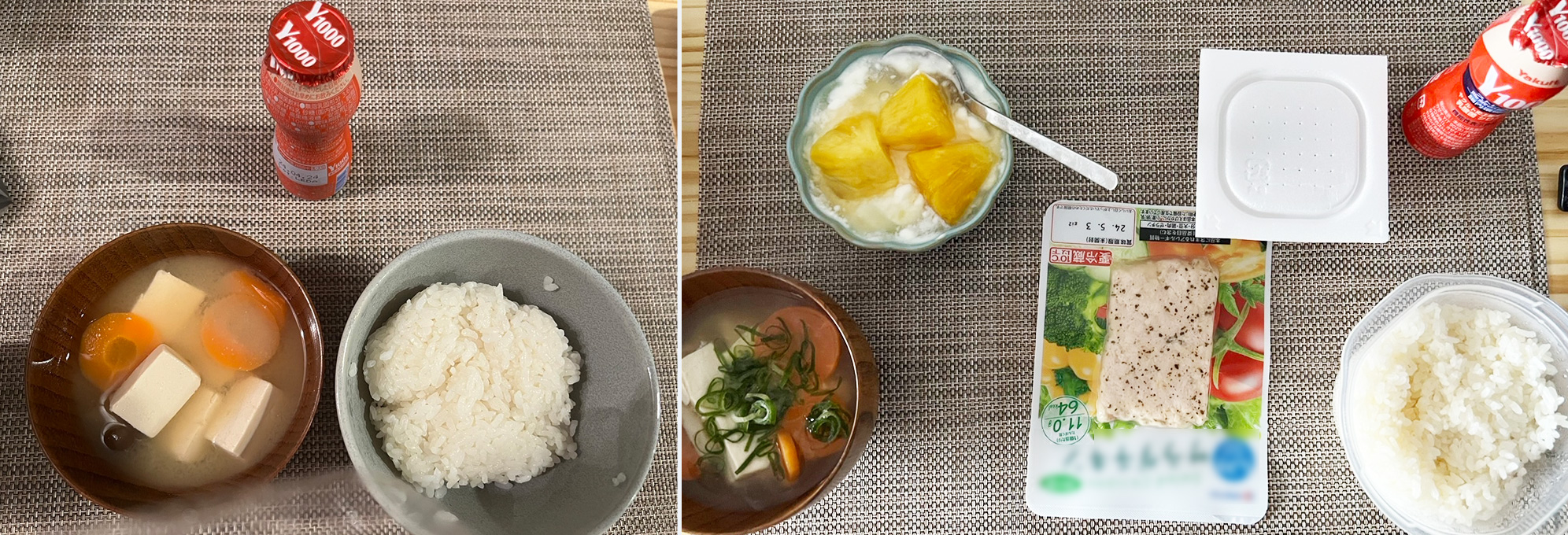 一人暮らしを始めた若いトップ選手が、自炊で必要なエネルギー量や栄養素を確保することは簡単ではありません。セレッソ大阪に在籍していた北野颯太選手もそんな悩みを持っていた選手のひとりでした。特に悩んでいたのが、朝食がなかなか揃えられないこと。そこでフィジカルコーチやスタッフと一緒に出した答えが「味噌汁」でした。味噌汁やスープなど温かい汁ものは、身体を温め消化器官の働きを活発にするので、身体を目覚めさせるだけでなく代謝のアップにも役立ちます。工夫次第でたんぱく質や海藻類、根菜類も入れられるので、さまざまな栄養素も摂りやすくなります。アドバイスを実践した次の面談のときには作った味噌汁の写真を送ってくれた北野選手。食事の全体量も上がり必要な栄養素が摂れるようになって、1年で身体がひと回り大きくなりました。